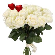 Букет из 11 роз, 13 ирисов и 7 хризантем